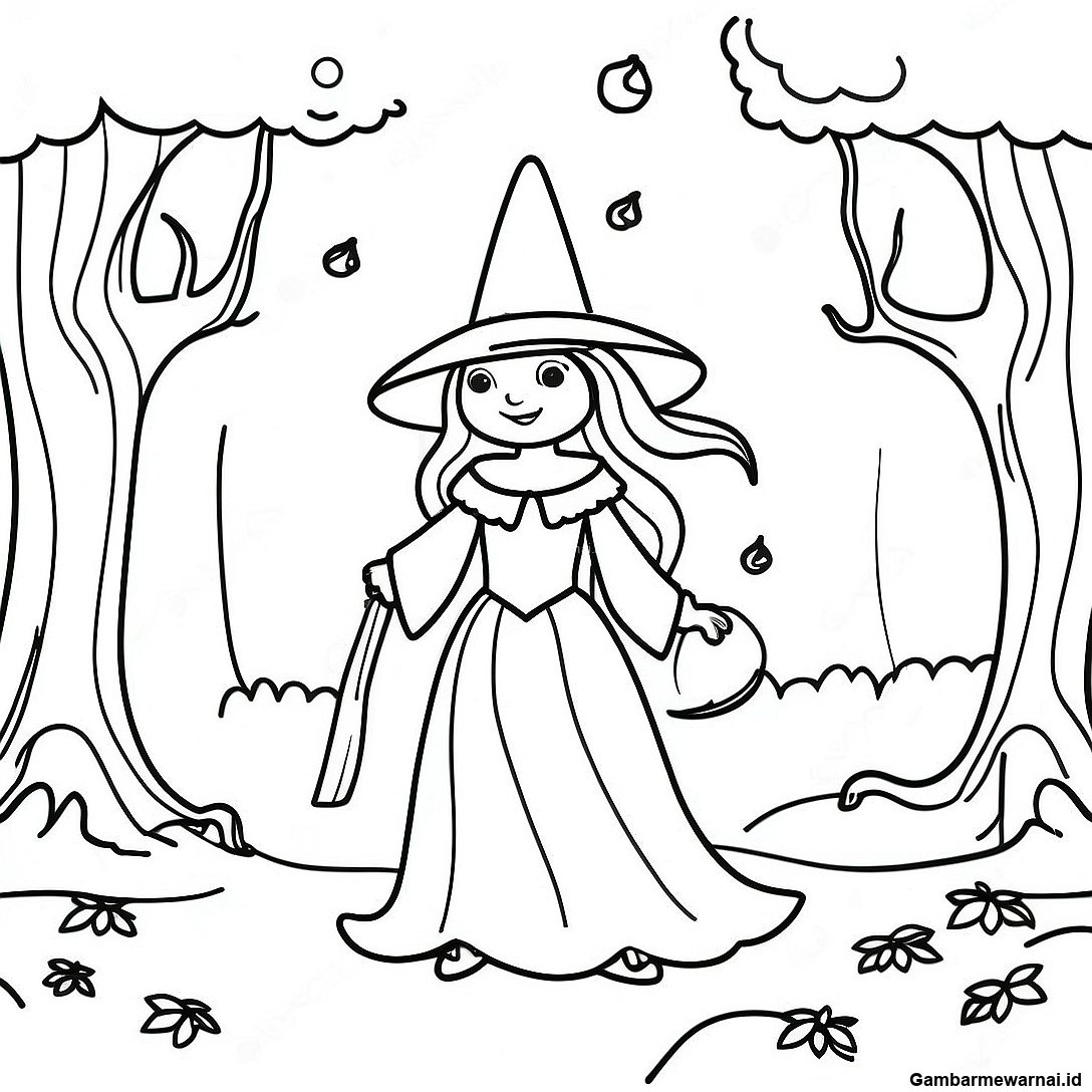 Halaman Mewarnai Penyihir Gotik Di Hutan 101963 40330
