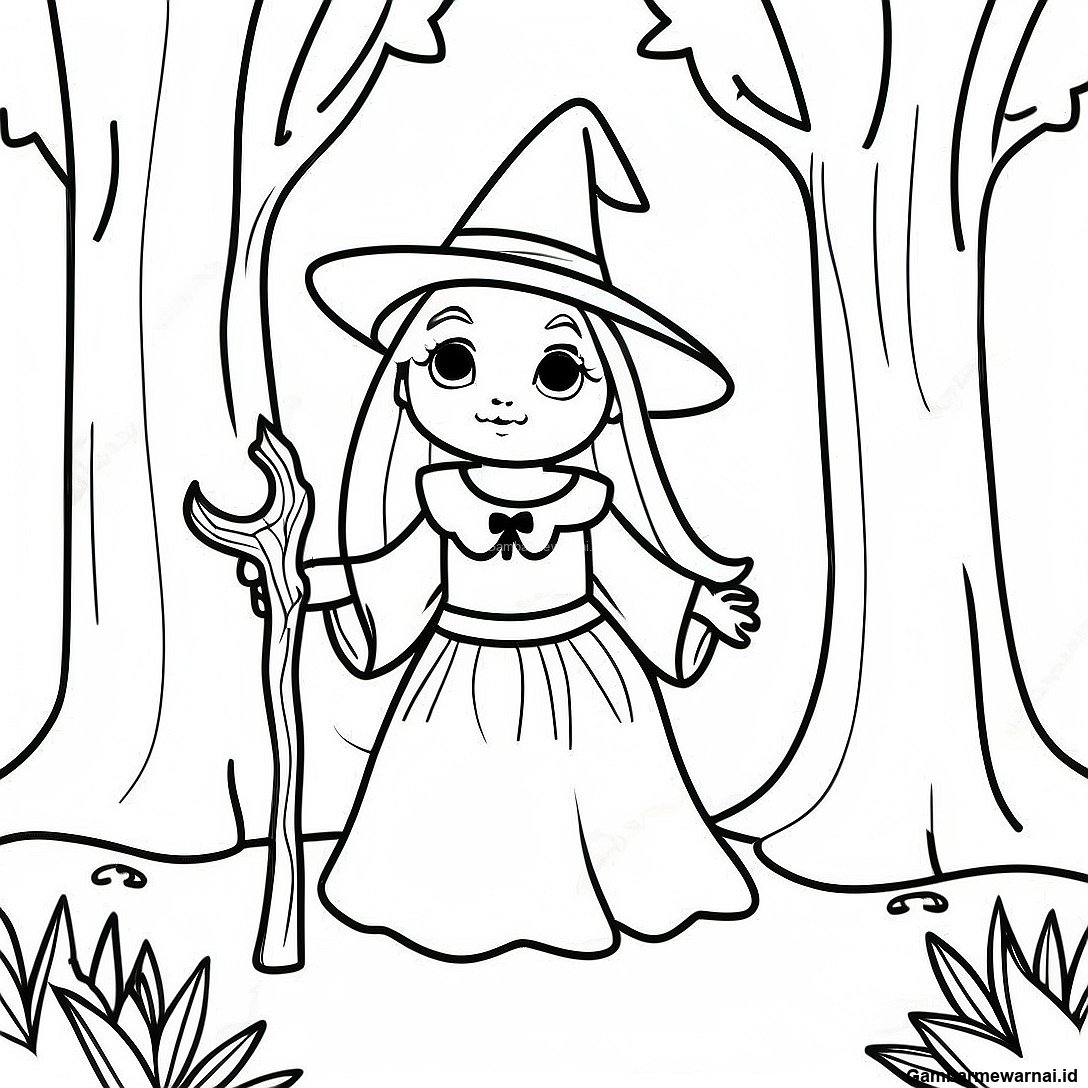Halaman Mewarnai Penyihir Gotik Di Hutan
