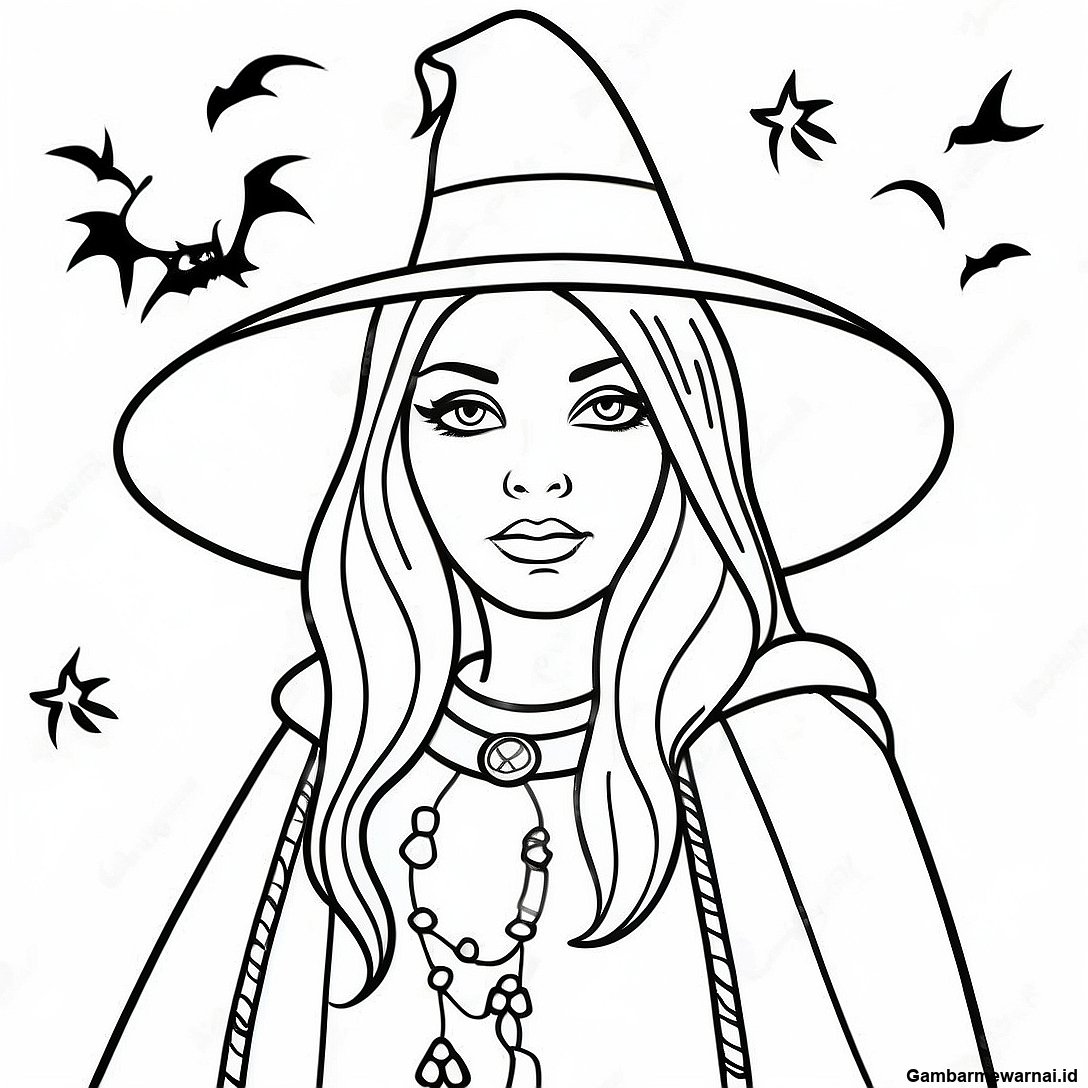 Halaman Mewarnai Penyihir Gotik Mistis