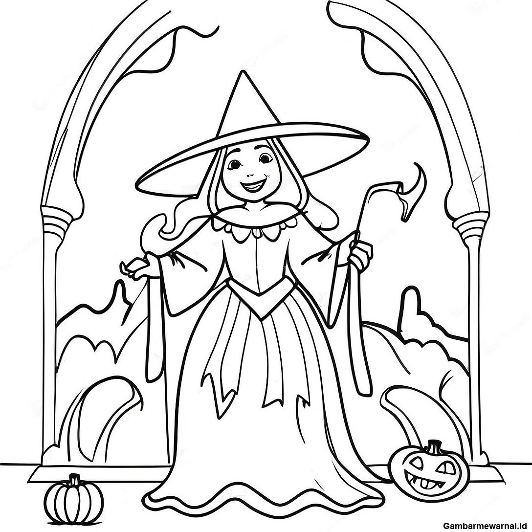 Unduh PDF yang Dapat Dicetak dari Halaman Mewarnai Penyihir Gotik Mistis