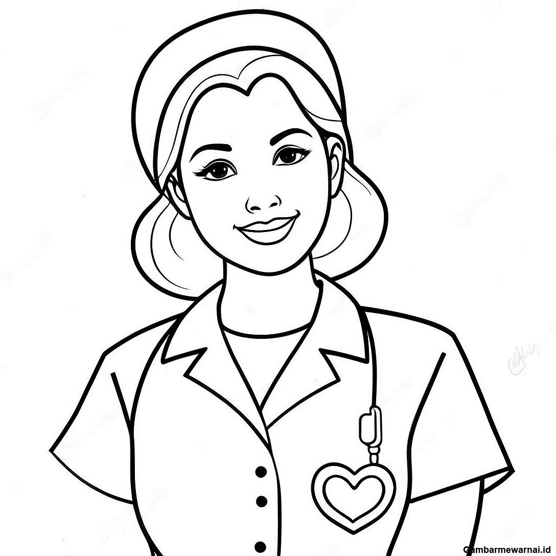 Halaman Mewarnai Perawat Dalam Seragam Dengan Hati