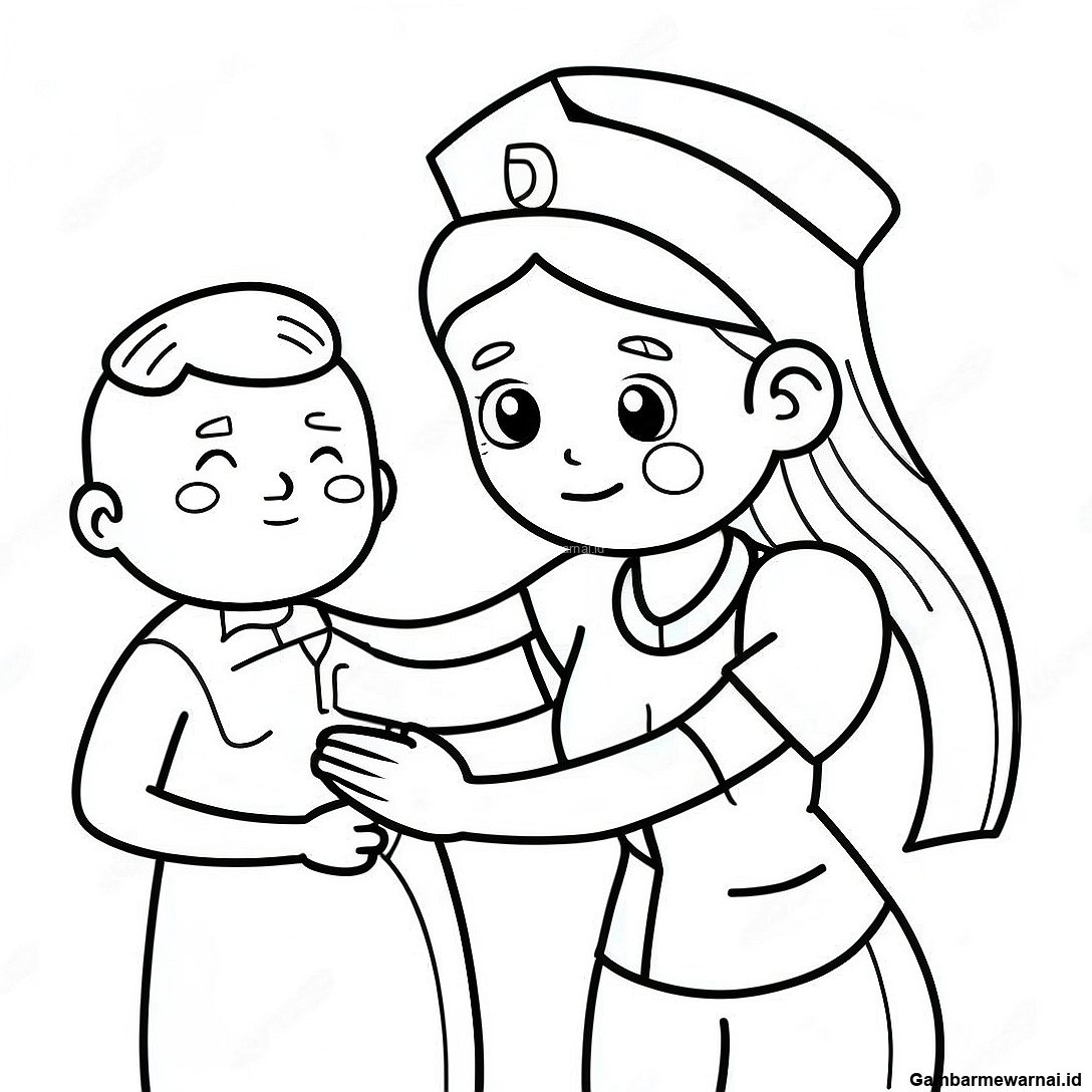 Halaman Mewarnai Perawat Ceria Membantu Pasien