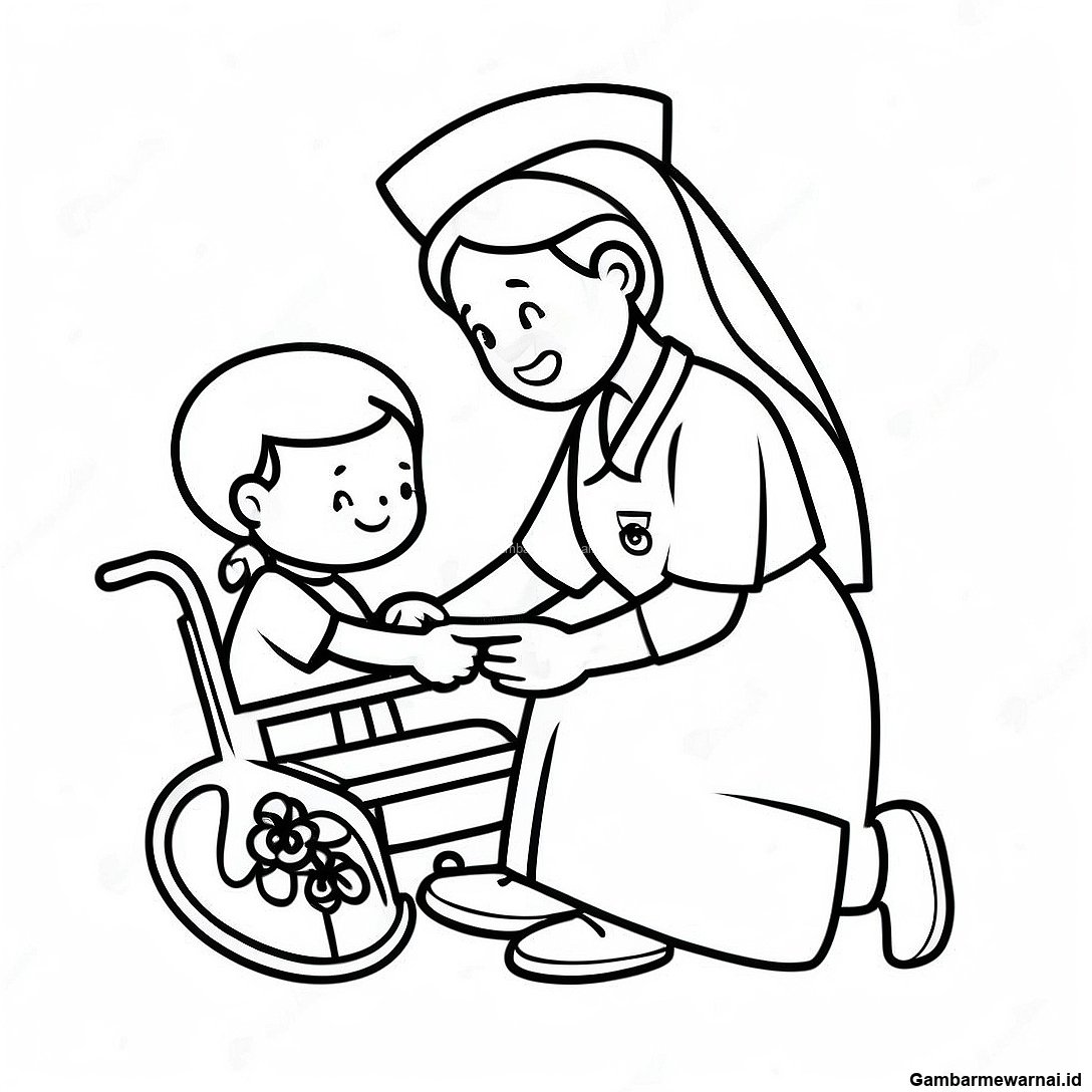 Halaman Mewarnai Perawat Ramah Membantu Anak
