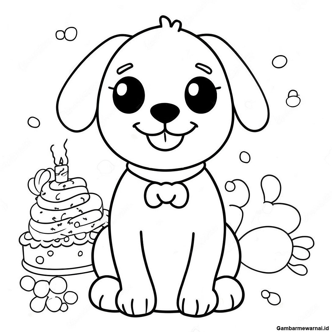 Halaman Mewarnai Perayaan Ulang Tahun Anak Anjing Yang Imut 125463 59410