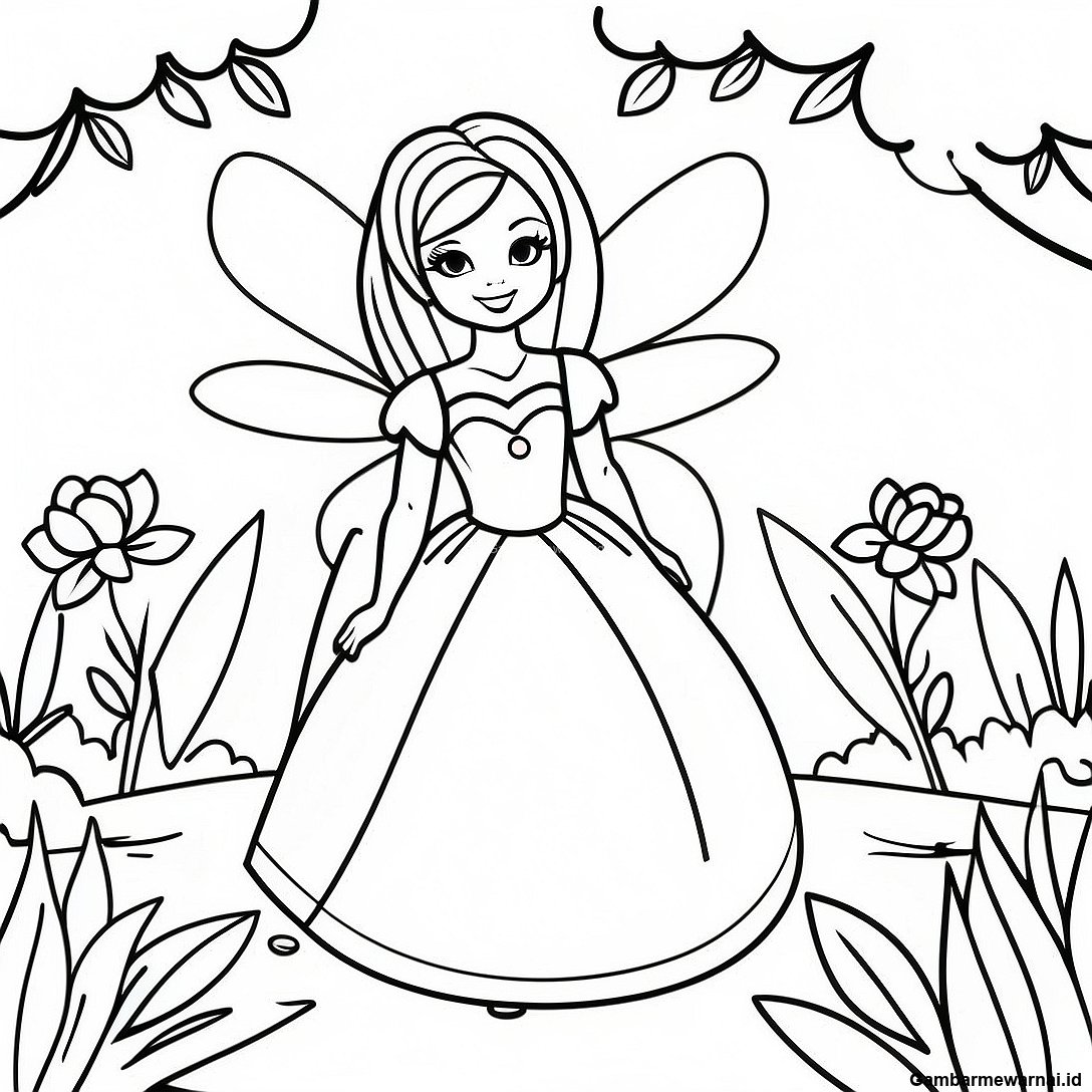Halaman Mewarnai Peri Barbie Menawan Di Taman
