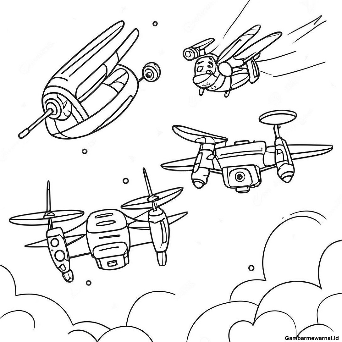 Halaman Mewarnai Pertarungan Drone Pembunuh Yang Garang