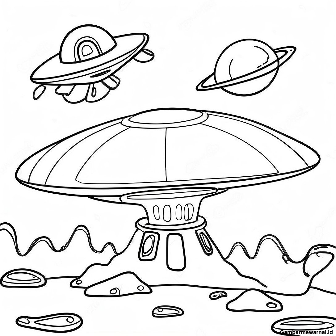 Halaman Mewarnai Pesawat Luar Angkasa Alien