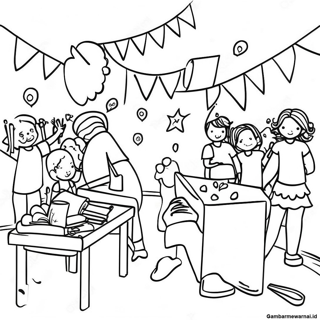 Halaman Mewarnai Pesta Liburan Sekolah Yang Berwarna-Warni