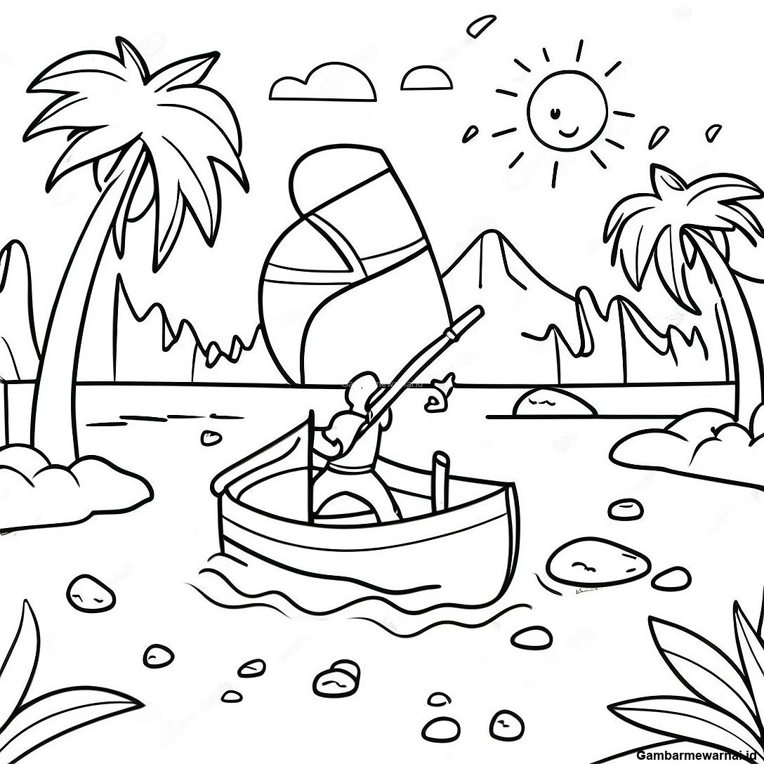 Halaman Mewarnai Petualangan Sungai Yang Cerah 131799 64464