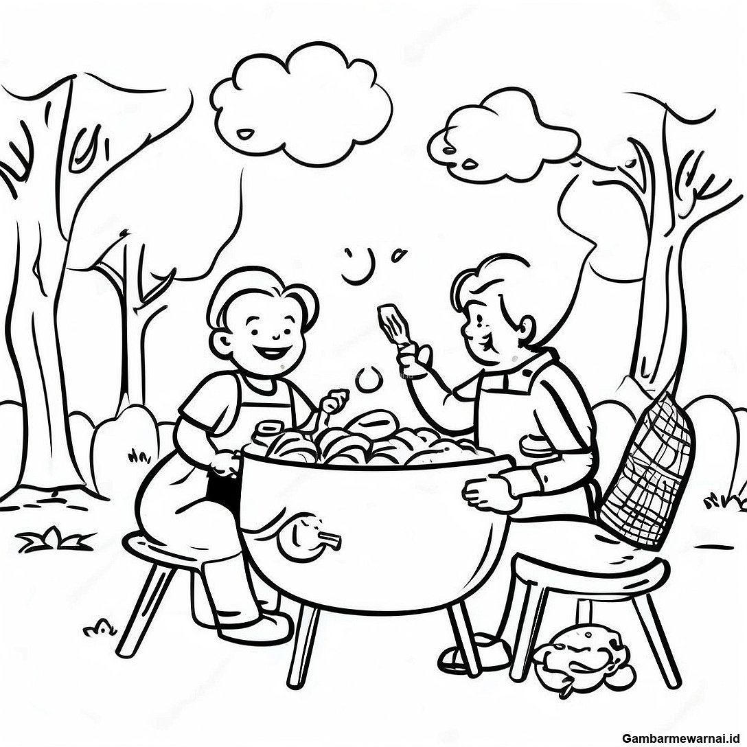 Halaman Mewarnai Piknik Keluarga Bbq 128479 61875