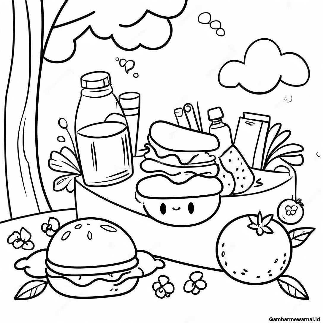 Halaman Mewarnai Piknik Musim Panas Yang Menyenangkan