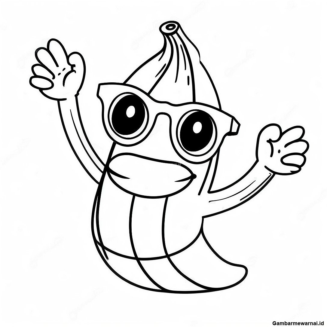 Halaman Mewarnai Pisang Lucu Dengan Kacamata Hitam