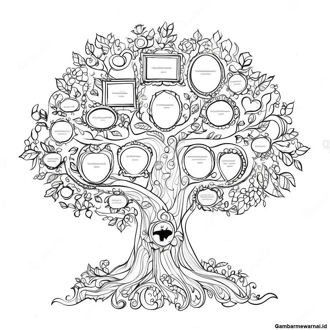 Halaman Mewarnai Pohon Keluarga Yang Detail