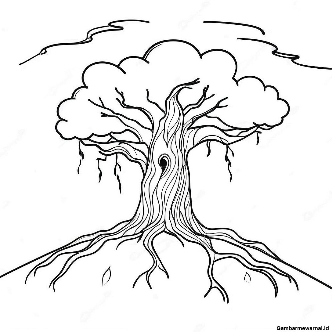 Halaman Mewarnai Pohon Kesepian Di Langit Badai