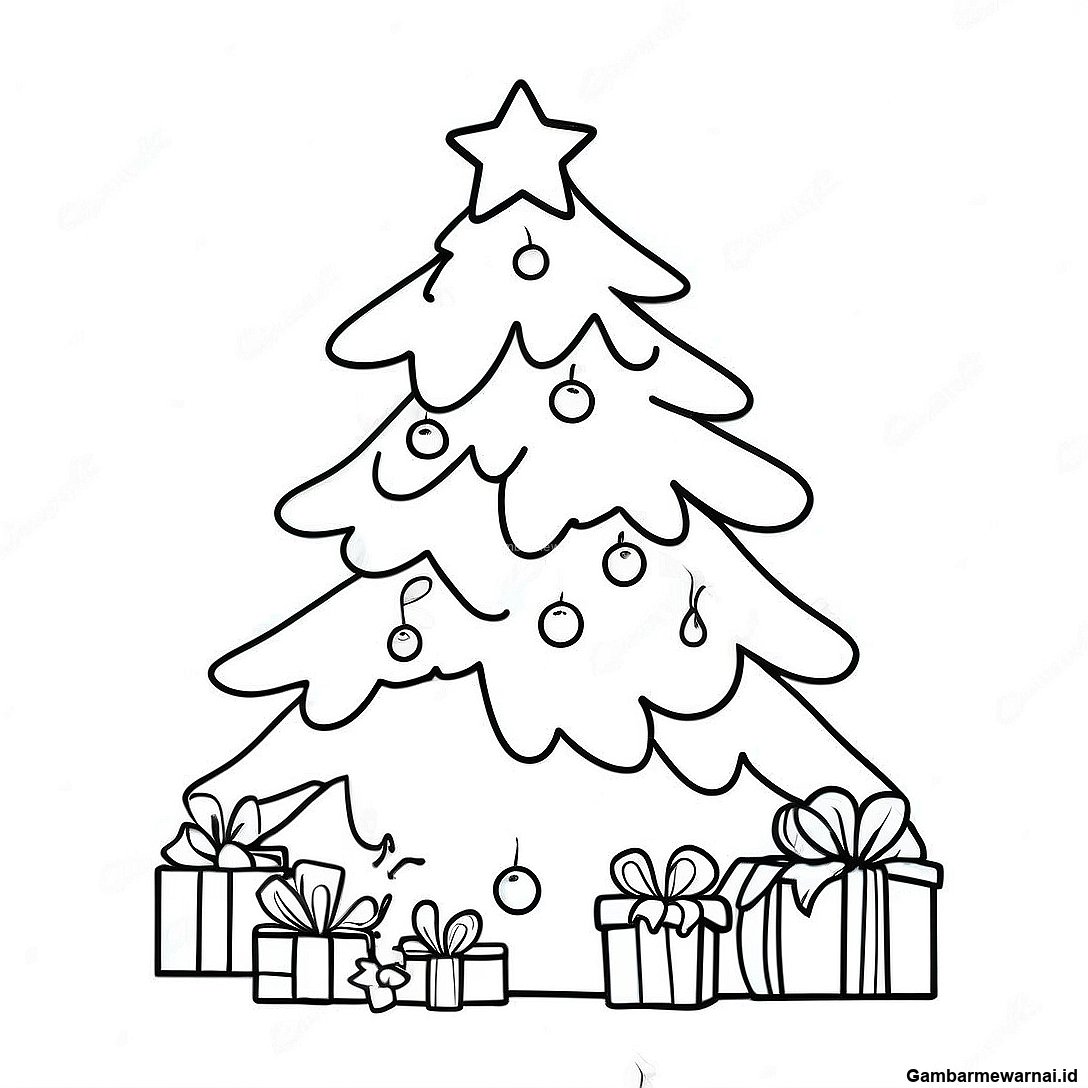 Unduh PDF yang Dapat Dicetak dari Halaman Mewarnai Pohon Natal Bersalju