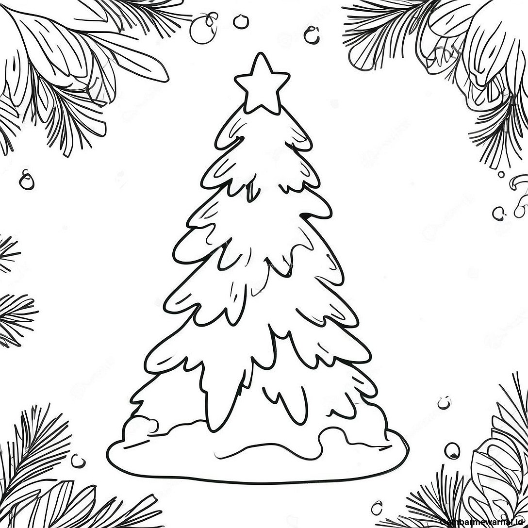 Halaman Mewarnai Pohon Natal Bersalju