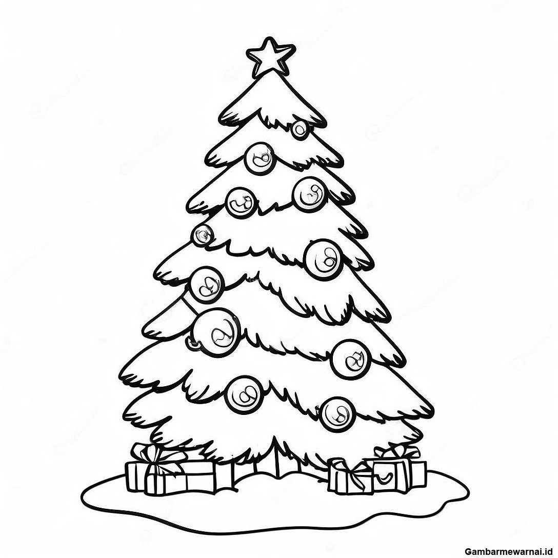 Unduh PDF yang Dapat Dicetak dari Halaman Mewarnai Pohon Natal Bersalju