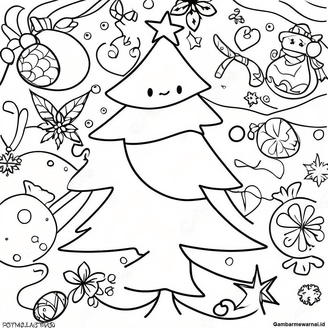 Halaman Mewarnai Pohon Natal Meriah
