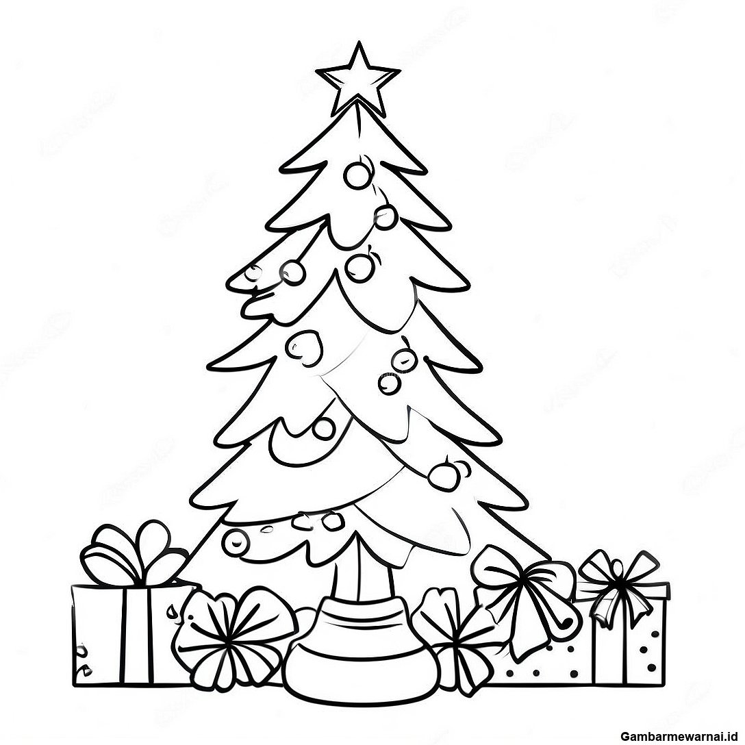 Halaman Mewarnai Pohon Natal Meriah