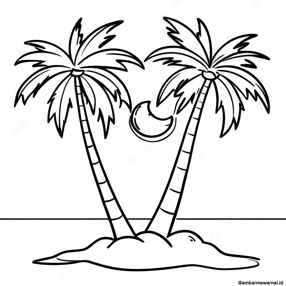 Halaman Mewarnai Pohon Palm Dengan Kelapa