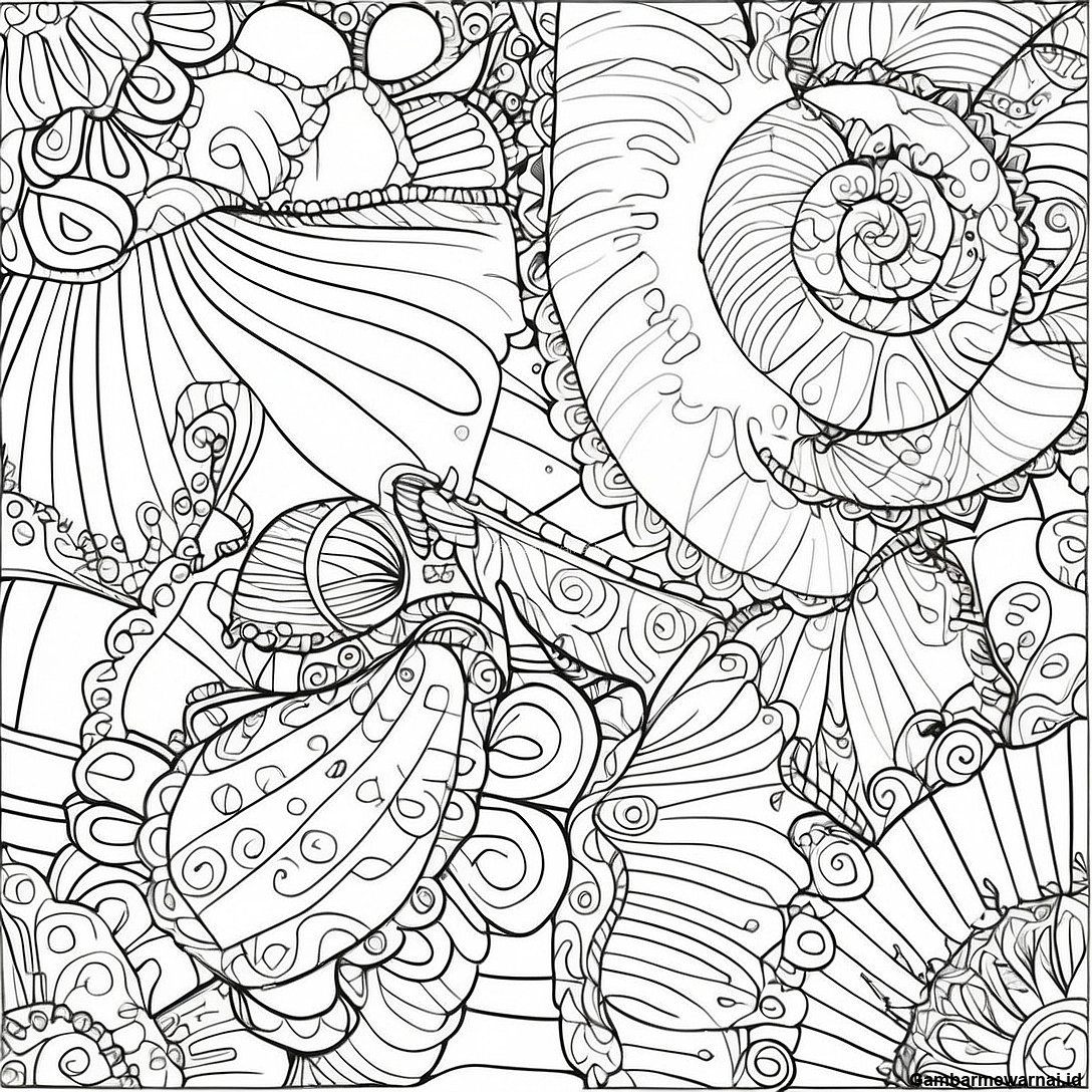 Halaman Mewarnai Pola Kerang Yang Rumit