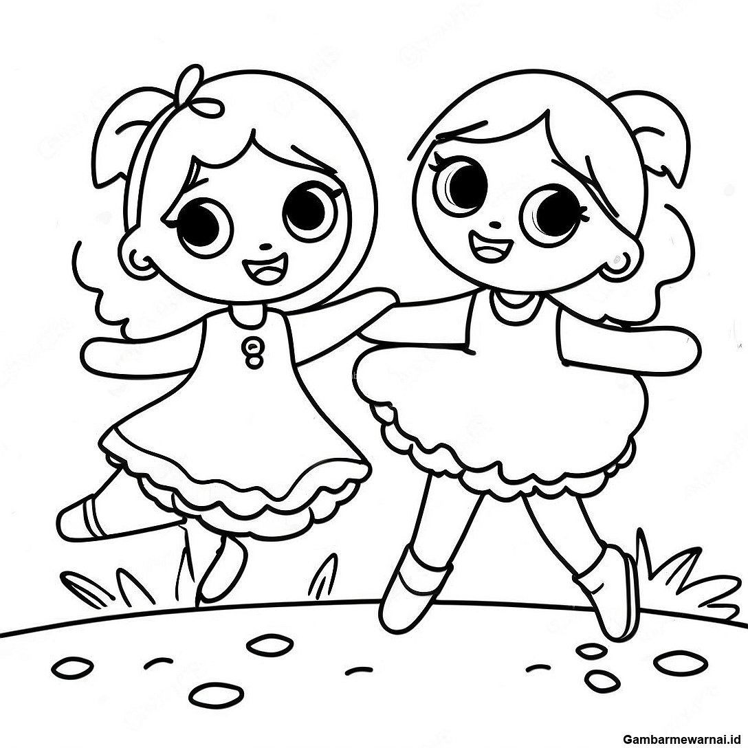 Halaman Mewarnai Poppy Dan Viva Menari Bersama