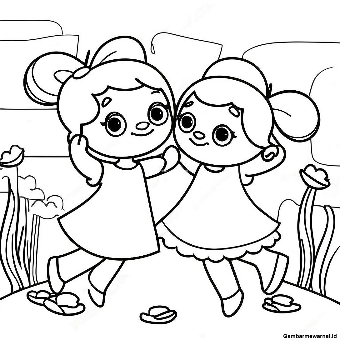 Halaman Mewarnai Poppy Dan Viva Menari Bersama