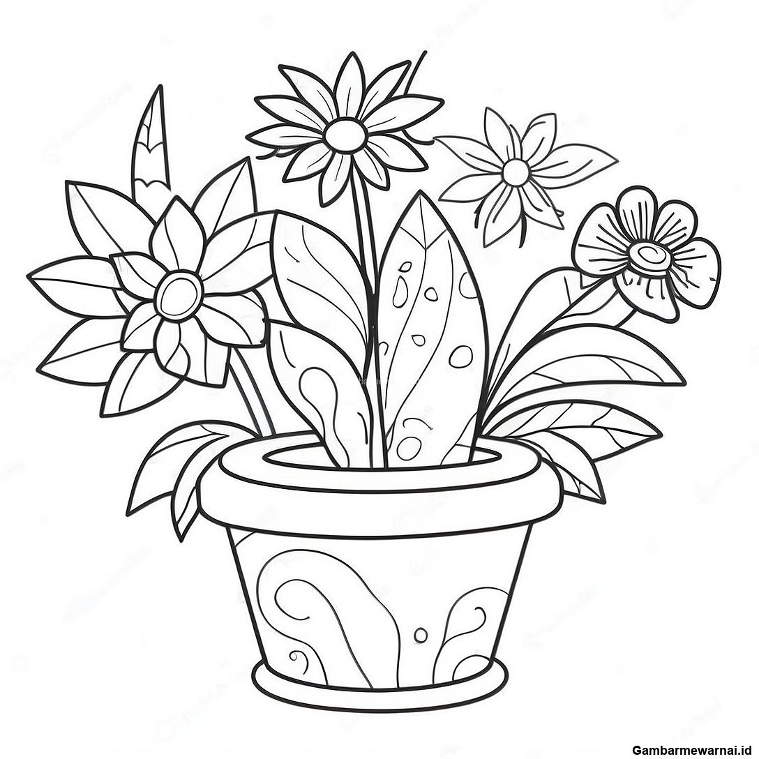 Unduh PDF yang Dapat Dicetak dari Halaman Mewarnai Pot Bunga Dekoratif
