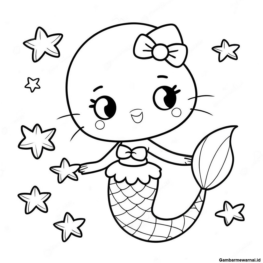 Halaman Mewarnai Putri Duyung Hello Kitty Yang Imut Dengan Bintang Laut 97518 36422