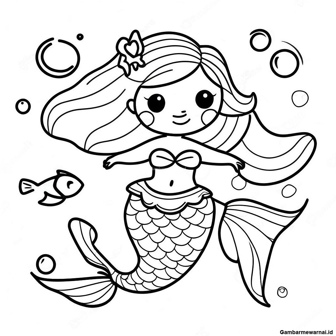 Halaman Mewarnai Putri Duyung Megah Berenang Dengan Ikan