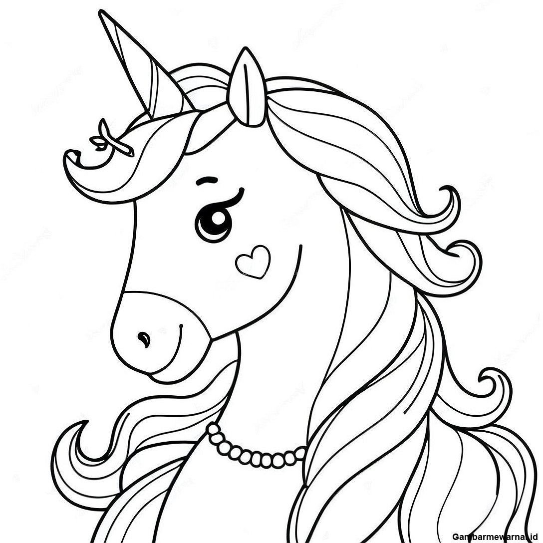 Halaman Mewarnai Unicorn Elegan dengan Surai Berkilau