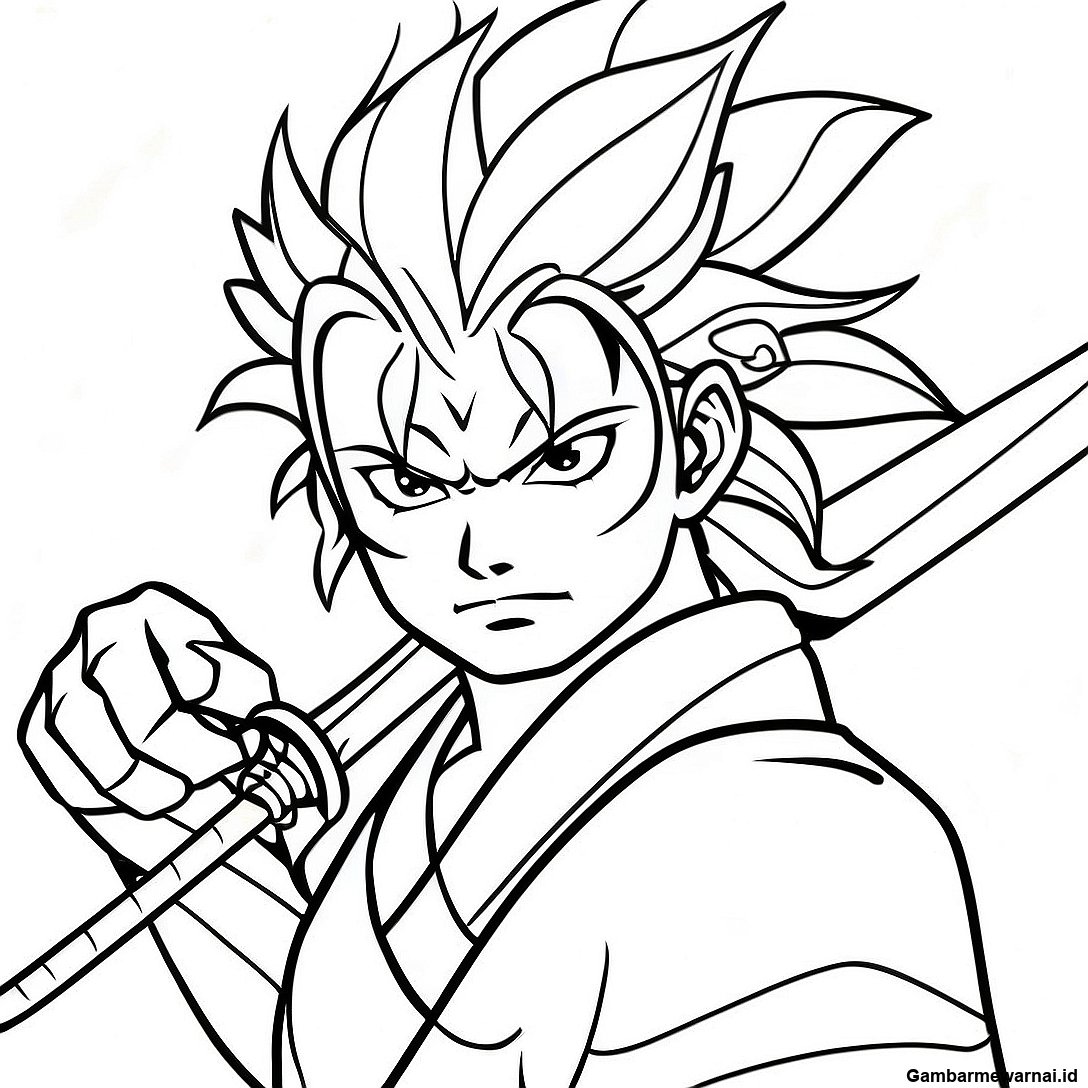 Unduh PDF yang Dapat Dicetak dari Halaman Mewarnai Rengoku Dengan Pedang