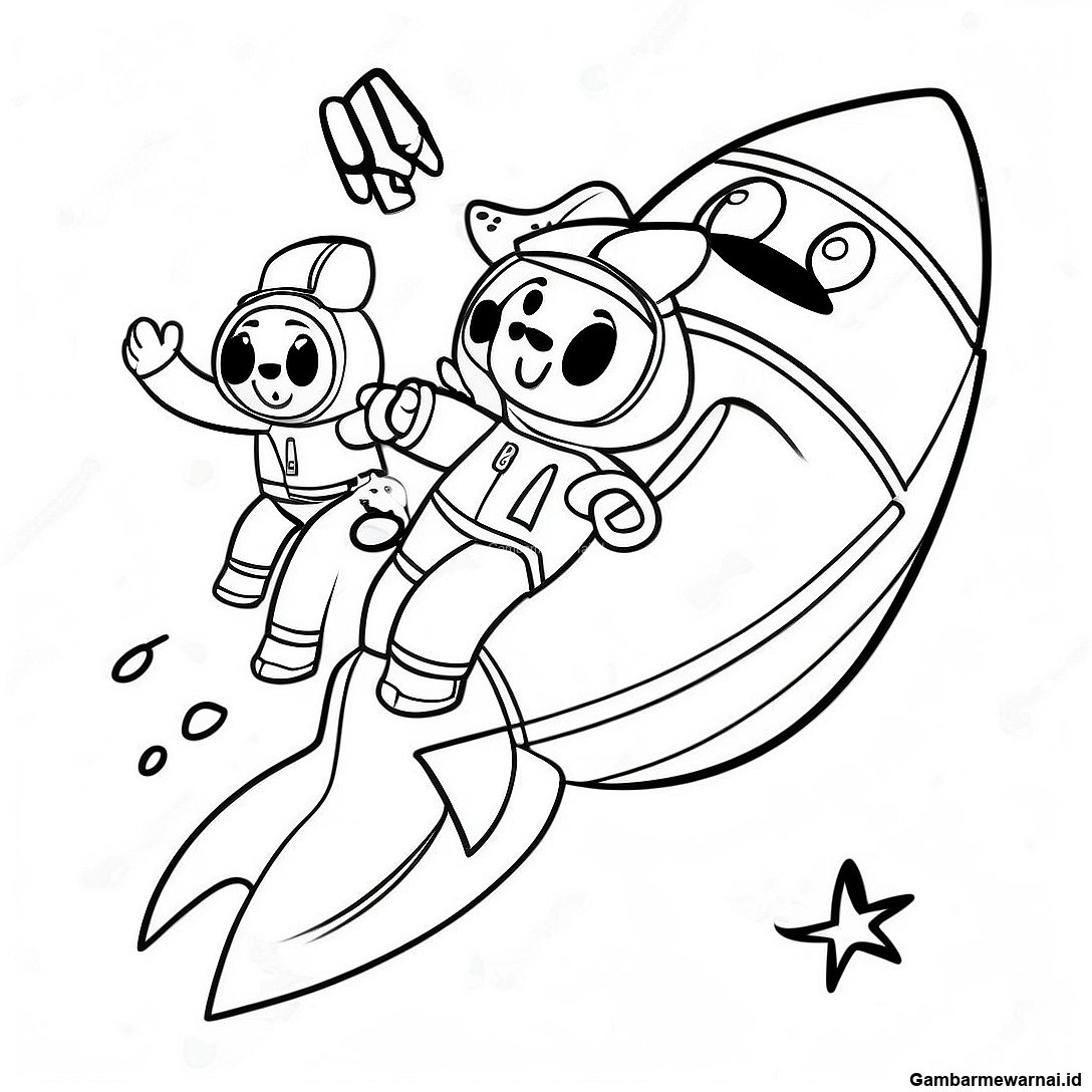Halaman Mewarnai Roket Dengan Astronot