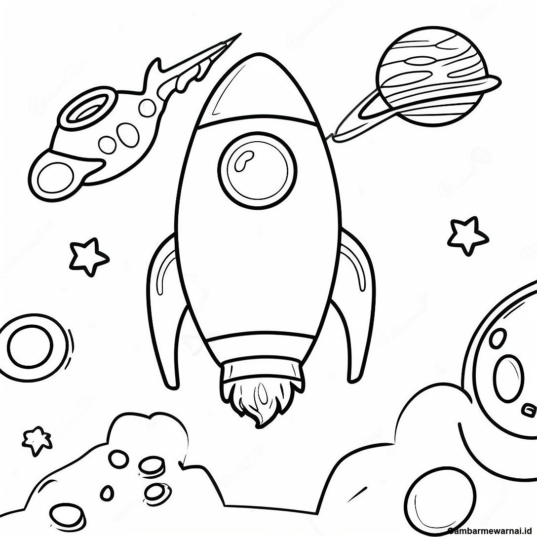 Halaman Mewarnai Pesawat Luar Angkasa Roket