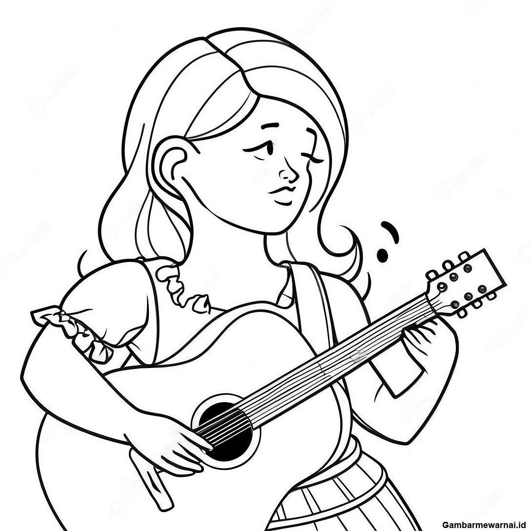 Halaman Mewarnai Rose Bermain Gitar