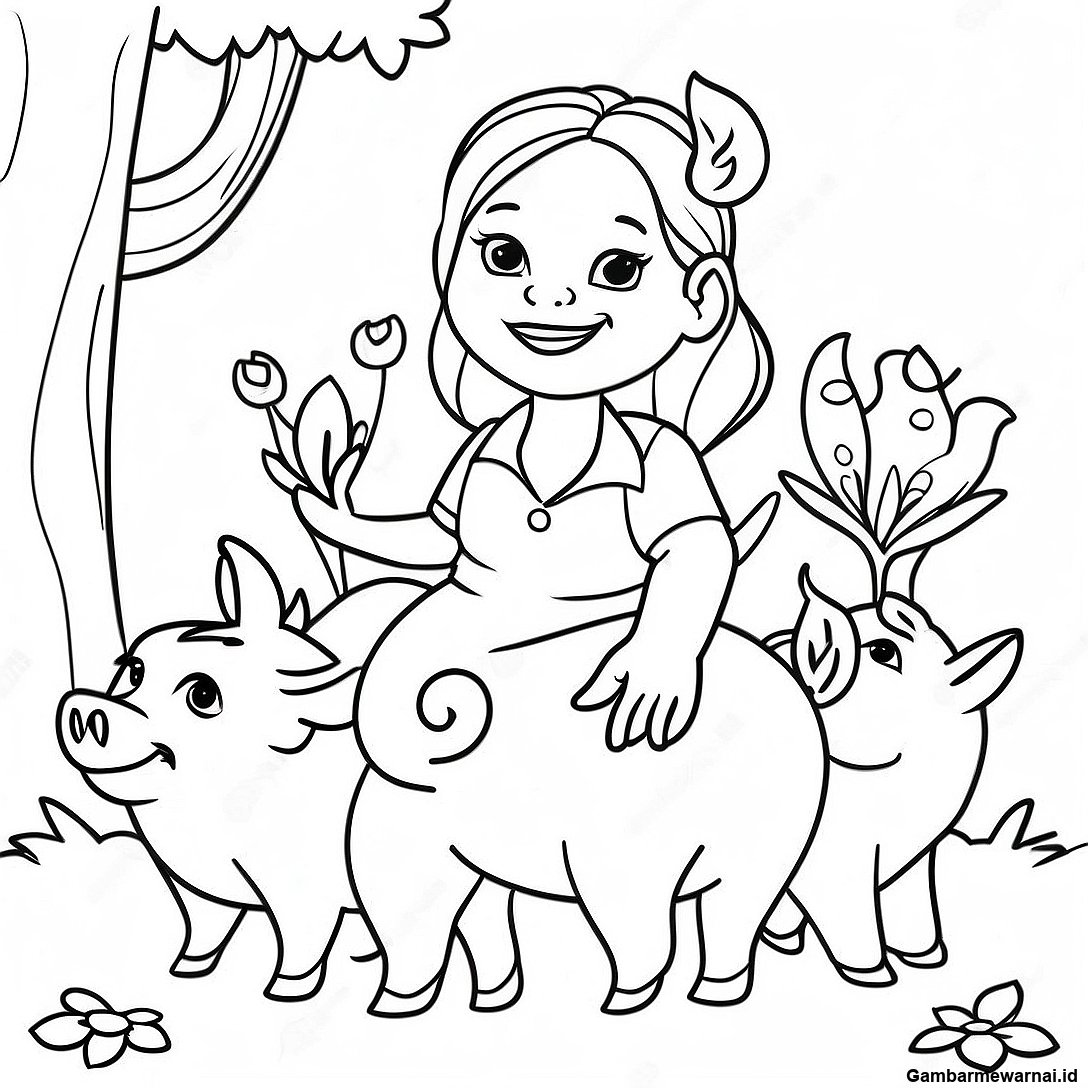 Halaman Mewarnai Rosita Dengan Anak Babi