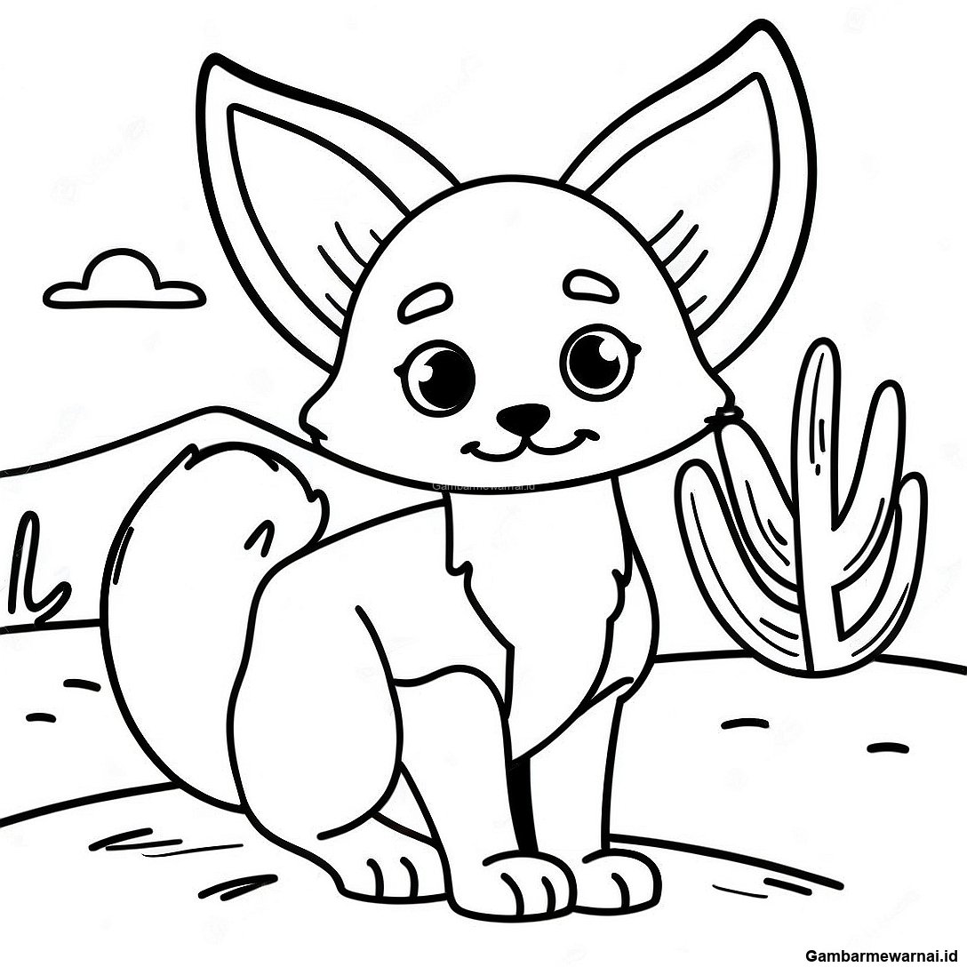 Halaman Mewarnai Rubah Fennec Yang Lucu Di Gurun