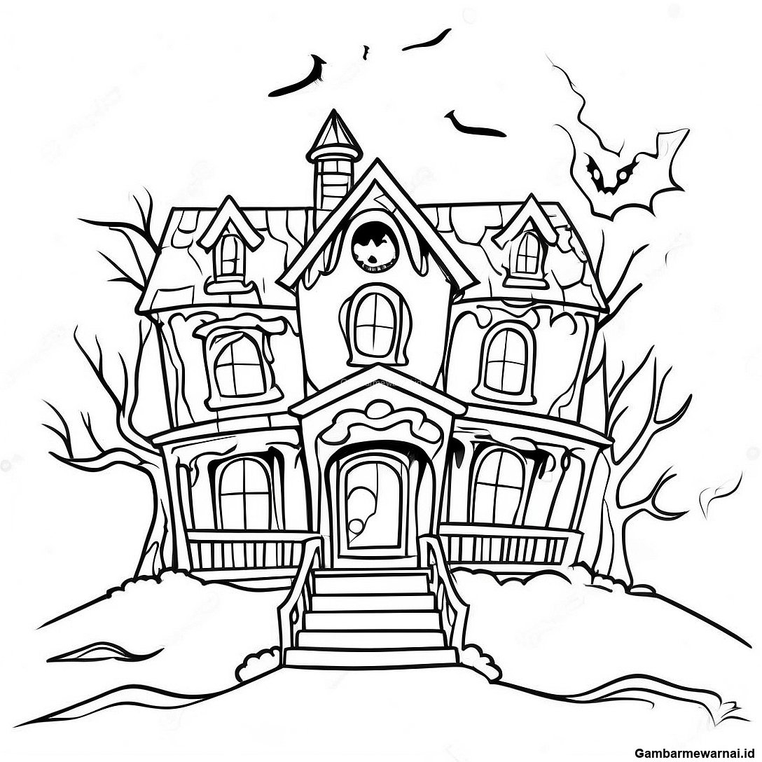 Halaman Mewarnai Rumah Hantu Menyeramkan
