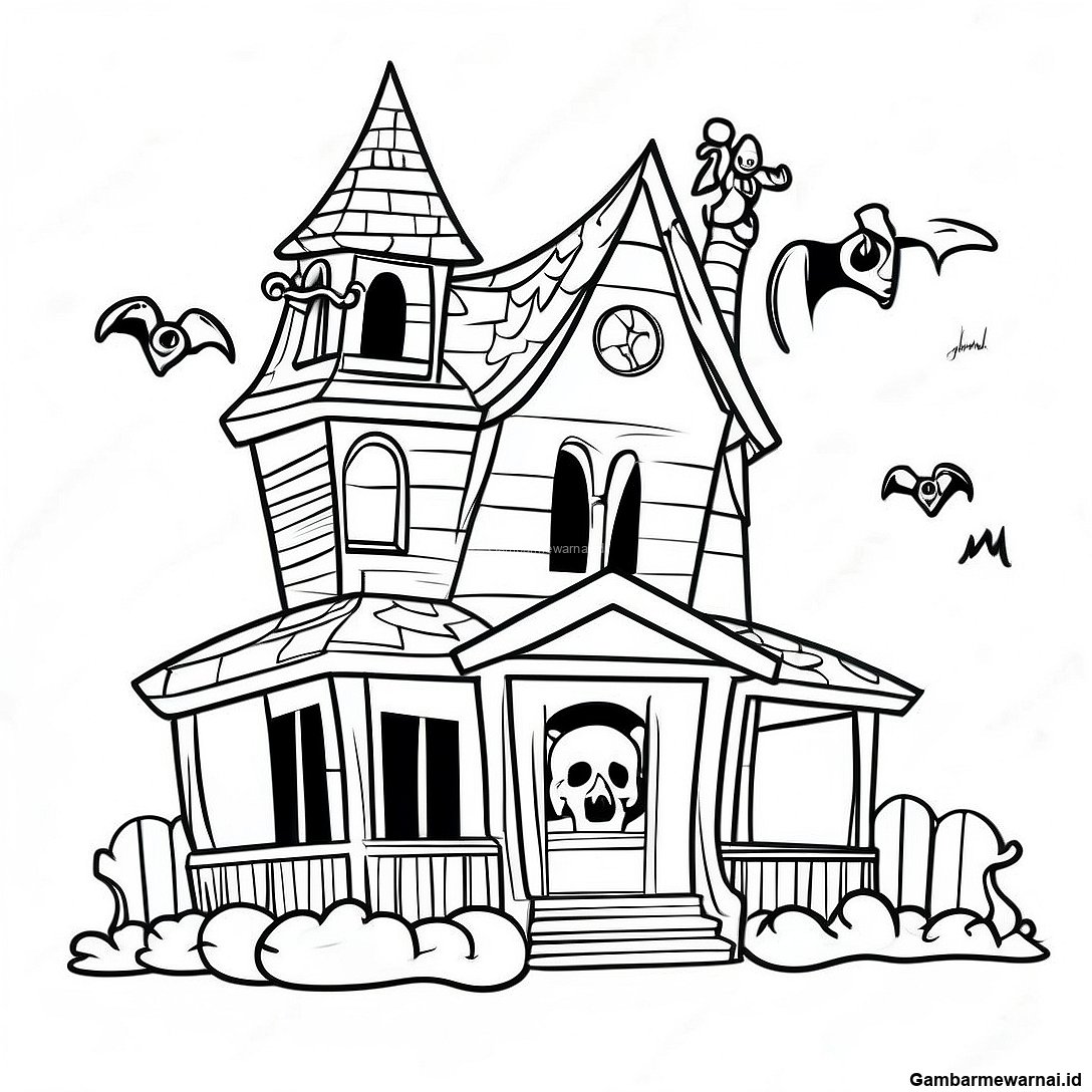 Halaman Mewarnai Rumah Hantu Merinding Yang Menakutkan