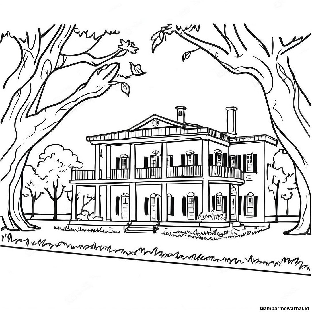 Halaman Mewarnai Rumah Perkebunan Louisiana Yang Menawan