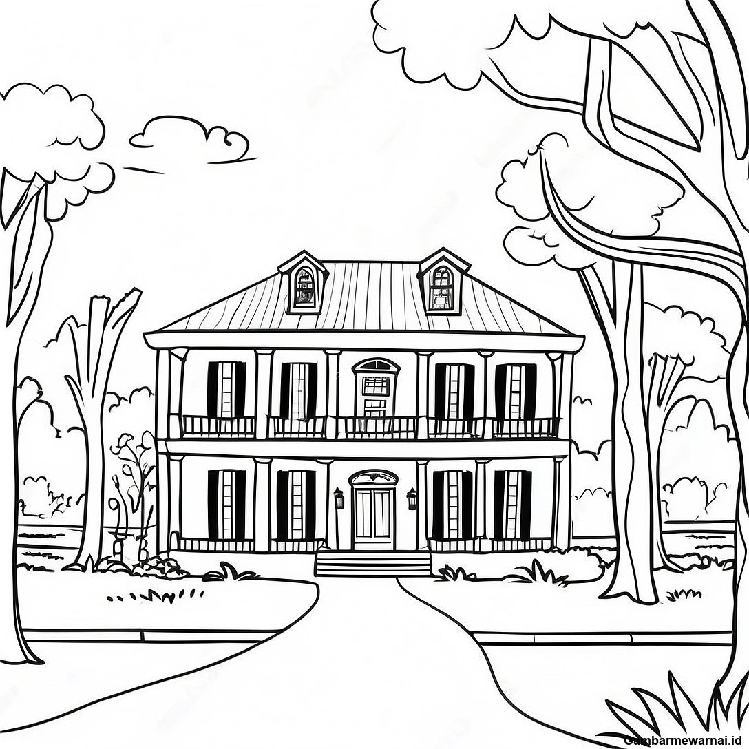 Halaman Mewarnai Rumah Perkebunan Louisiana Yang Menawan 109675 46406