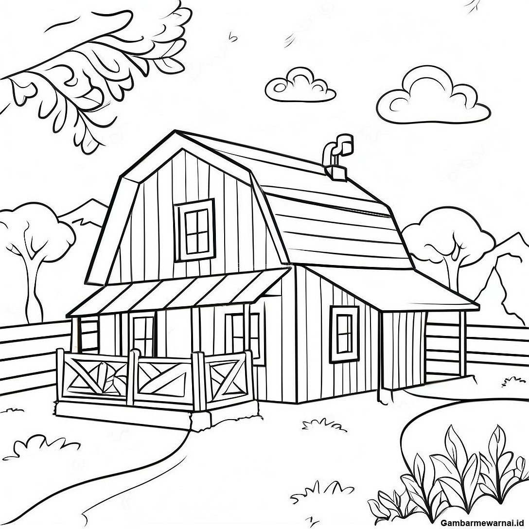 Halaman Mewarnai Rumah Pertanian Menawan Dengan Gudang