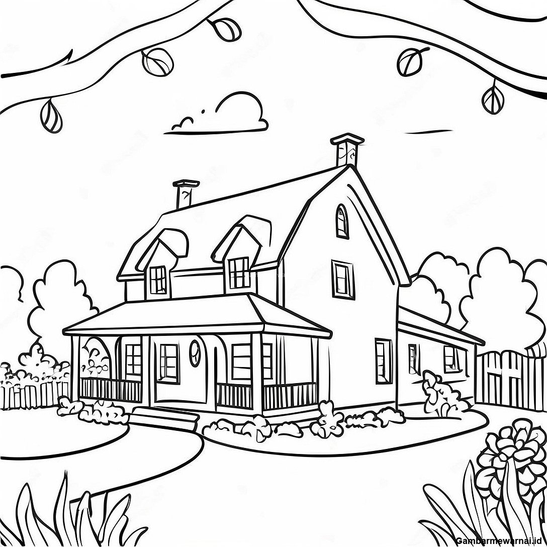 Halaman Mewarnai Rumah Pertanian Yang Menawan Dengan Taman