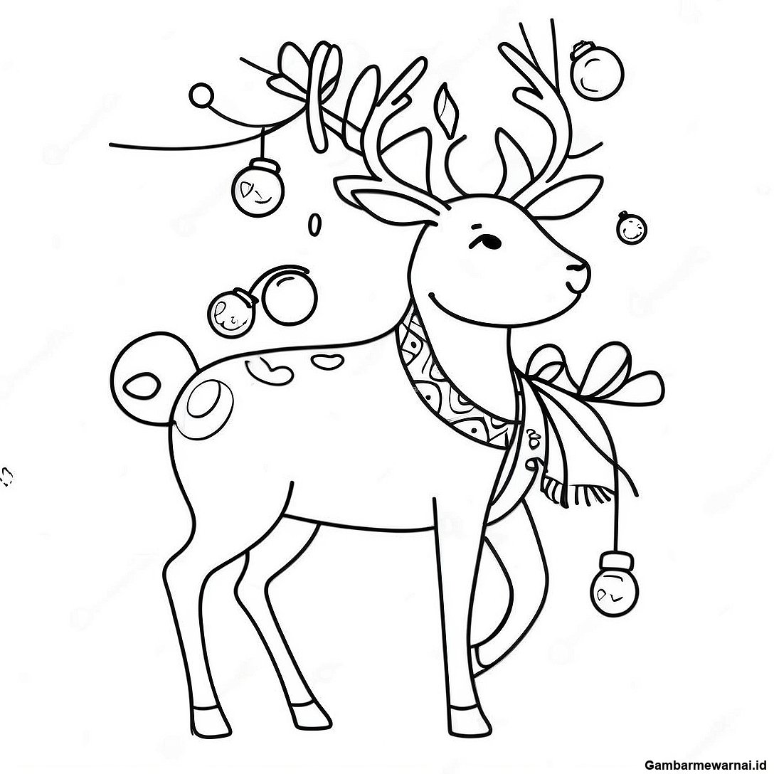 Halaman Mewarnai Rusa Meriah Dengan Lampu Natal