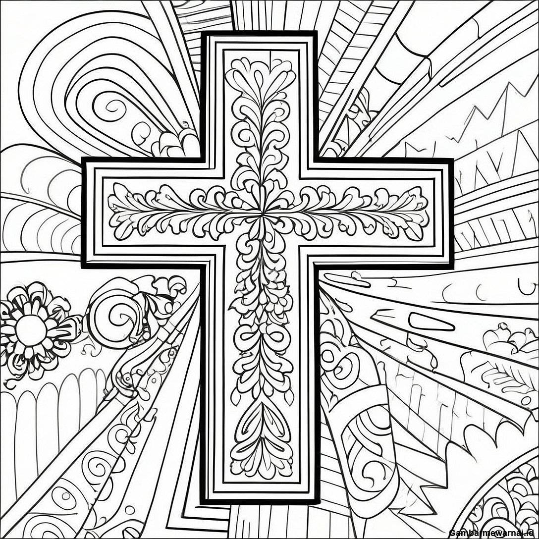 Halaman Mewarnai Salib Geometris Yang Berani