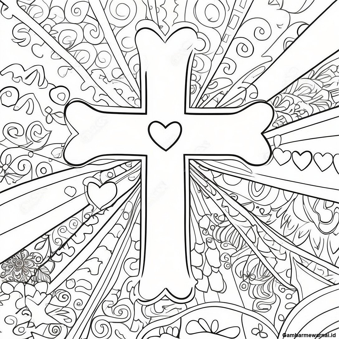 Halaman Mewarnai Salib Sederhana Dengan Hati