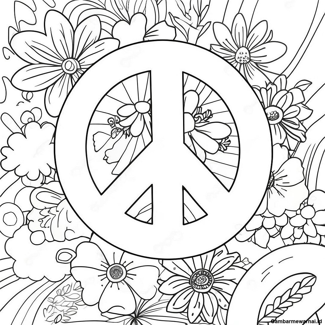 Halaman Mewarnai Simbol Perdamaian Dengan Bunga 124539 58697