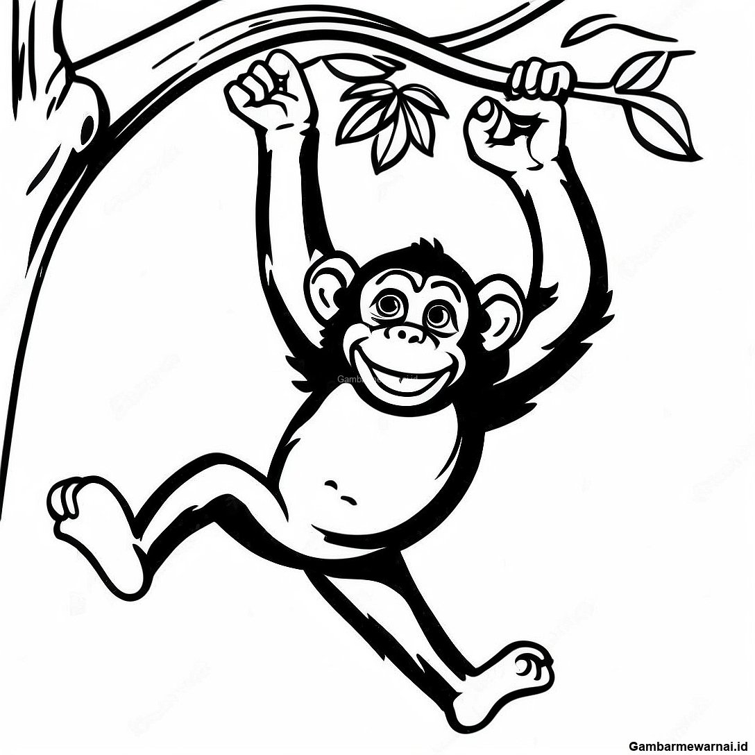 Halaman Mewarnai Simpanse Bergoyang Dari Pohon