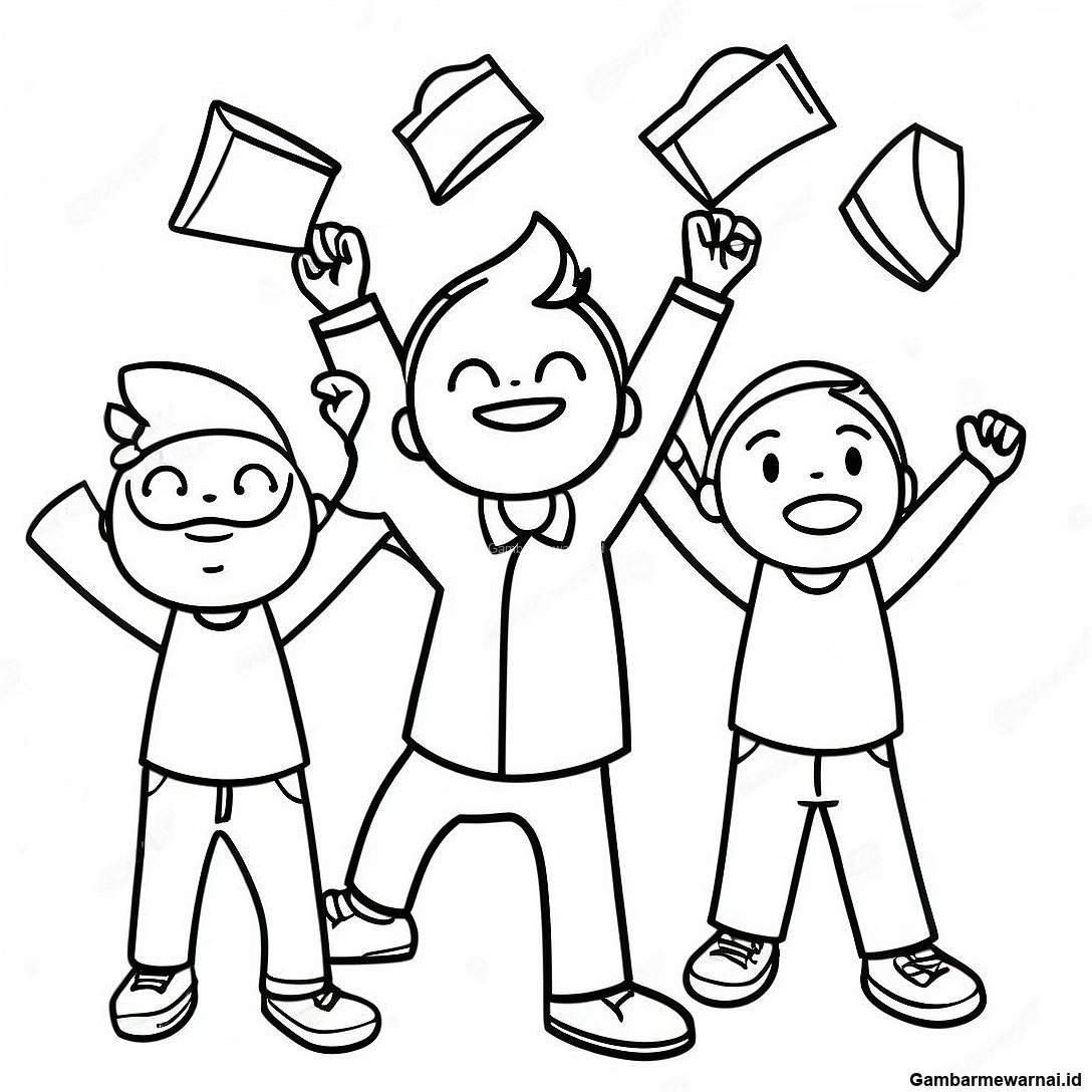 Halaman Mewarnai Siswa Bersemangat Melempar Topi