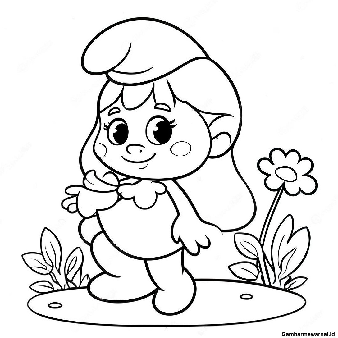 Halaman Mewarnai Smurfette Dengan Bunga 46123 10101